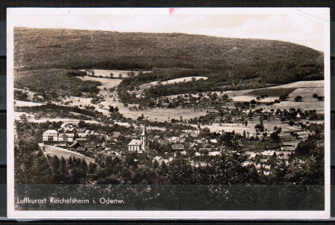 AK Reichelsheim, Teilansicht, gelaufen 1952 Im oberen Bereich 2 rote Flecke