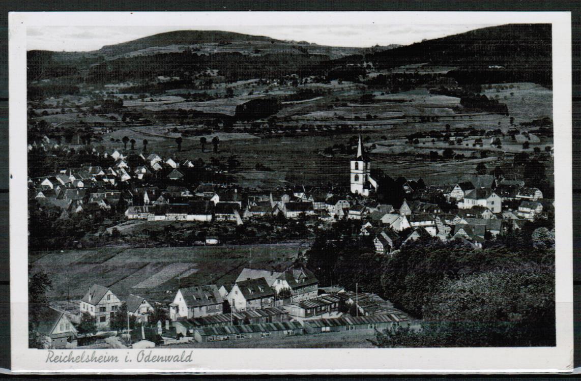 AK Reichelsheim, Teil-Ansicht, gelaufen 1936. Im Vordergrund / im Bild unten einige Baracken oder Fabrik !?