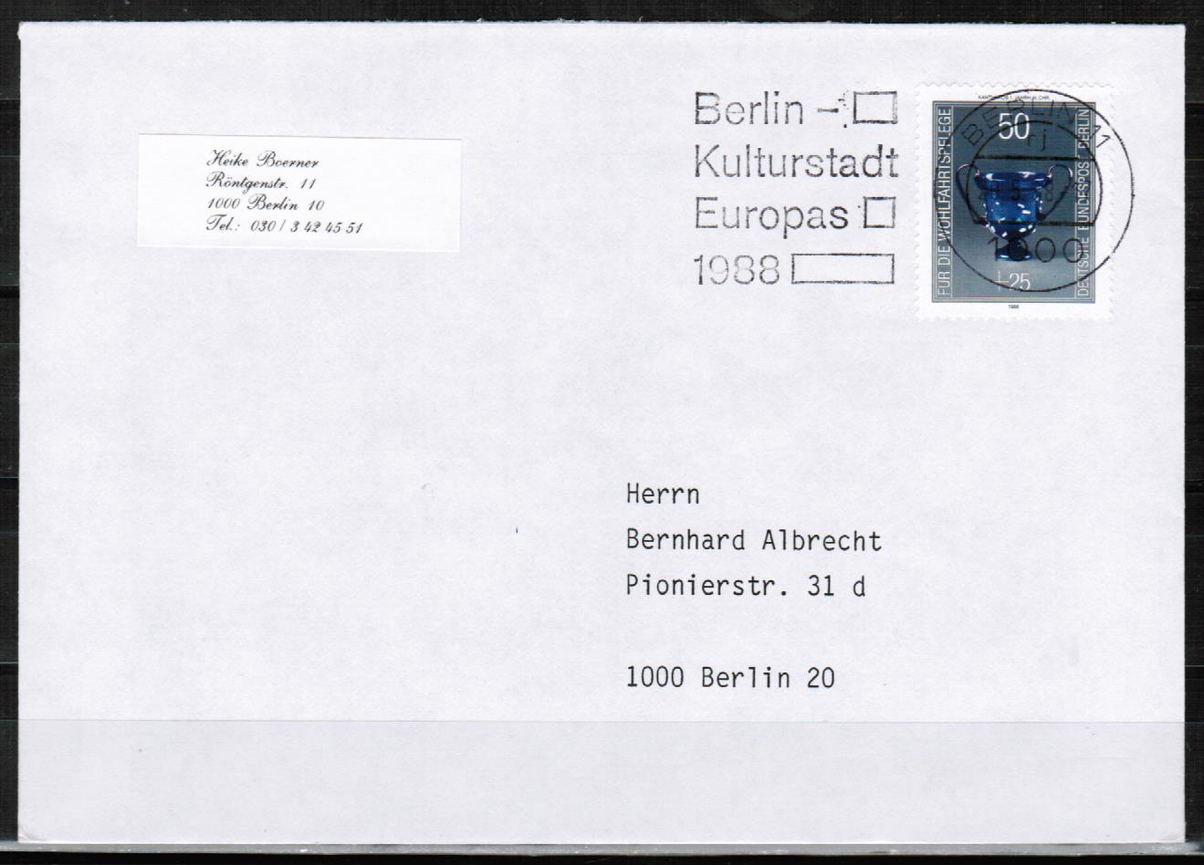 Berlin 765 als portogerechte Einzelfrankatur mit 50 Pf Wohlfahrt 1986 auf Ortsbrief bis 20 Gramm aus der Gebührenperiode von 1986-1989 innerhalb Berlins. Brief mit Berliner Stempel - in einwandfreier Erhaltung !