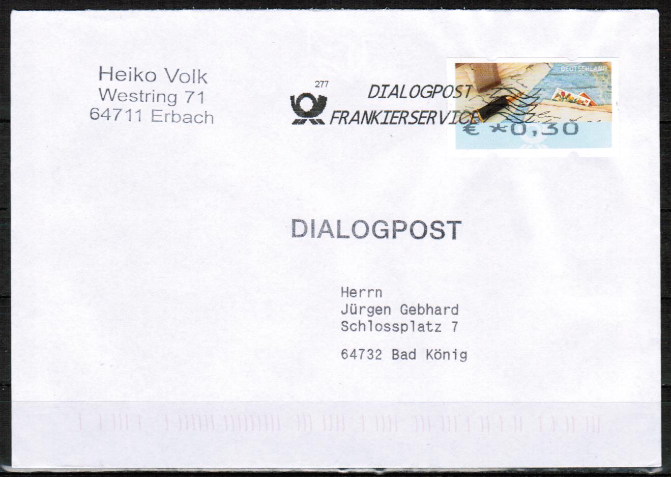 Bund ATM 8 mit €-Zeichen als portogerechte Einzelfrankatur mit 0,30 € auf Inlands-Dialogpost von 2019-2021. Brief mit Codierung - in einwandfreier Erhaltung !