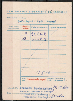 Bund 340 als portogerechte Einzelfrankatur mit 7 Pf Wohlfahrt 1960 / Rotkäppchen auf kleinformatiger Inlands-Drucksache-Postkarte von 1960-1962. Marke mit kleinen Mängelchen (1 Zahnfehler, und kleine Knitter in der Ecke rechts oben) ... Tapeten-Bestellung "bis 5 Worte" ...